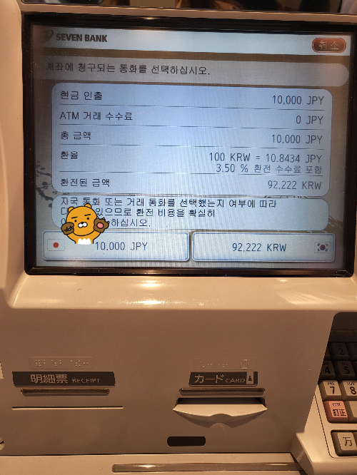 엔화를 누르시면 현금이 나옵니다