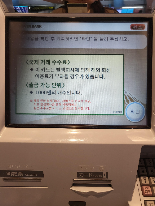 세븐뱅크 현금인출기가 있어요