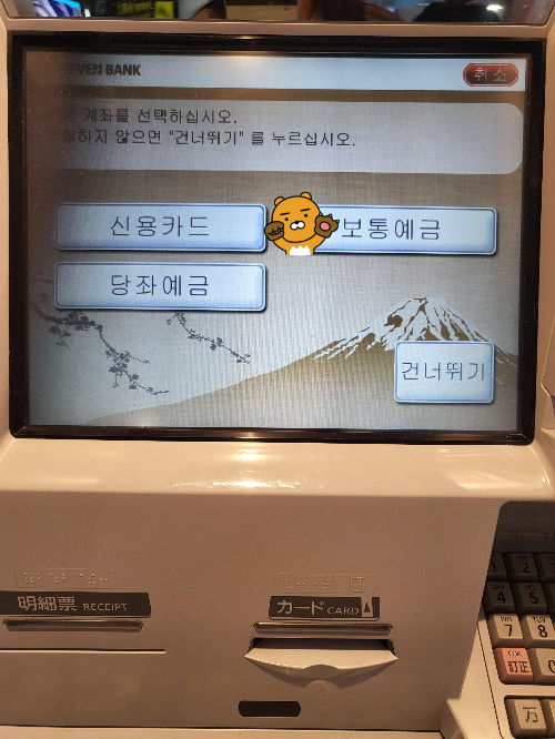 전 처음에 현금인출기를 못찾아서