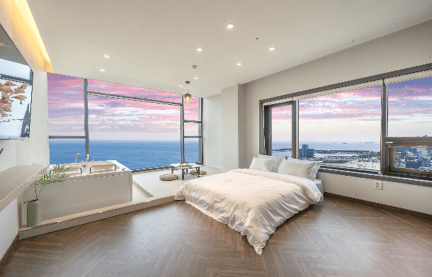 강릉 지브스파펜션은 강원도 강릉시 주문진읍 해안로 1935에 위치한 펜션입니다. 평일 기준으로 객실 요금은 109,000원에서 155,000원으로 설정되어 있으며, 모든 객실에서 동해 오션뷰를 넓게 즐길 수 있습니다. 4층 이상 객실부터는 월풀과 스파를 이용할 수 있어 더욱 편안한 휴식을 제공합니다. 또한 객실 내에서는 넷플릭스를 무료로 시청할 수 있는 서비스도 제공됩니다.