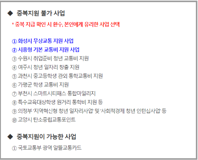 중앙부처 및 지방자치단체에서 명시적으로 교통비를 지급받는 경우 경기도 청소년 교통비는