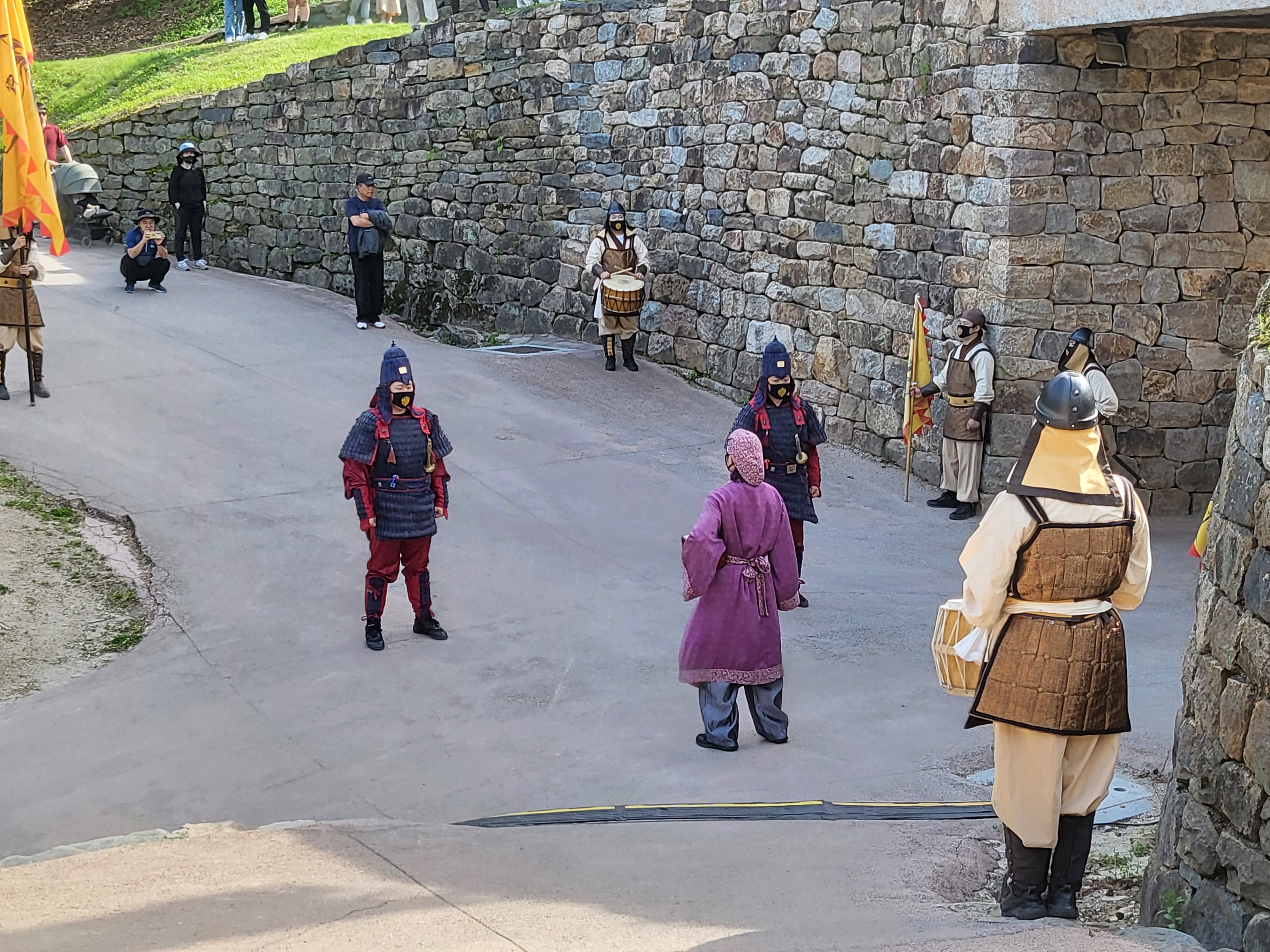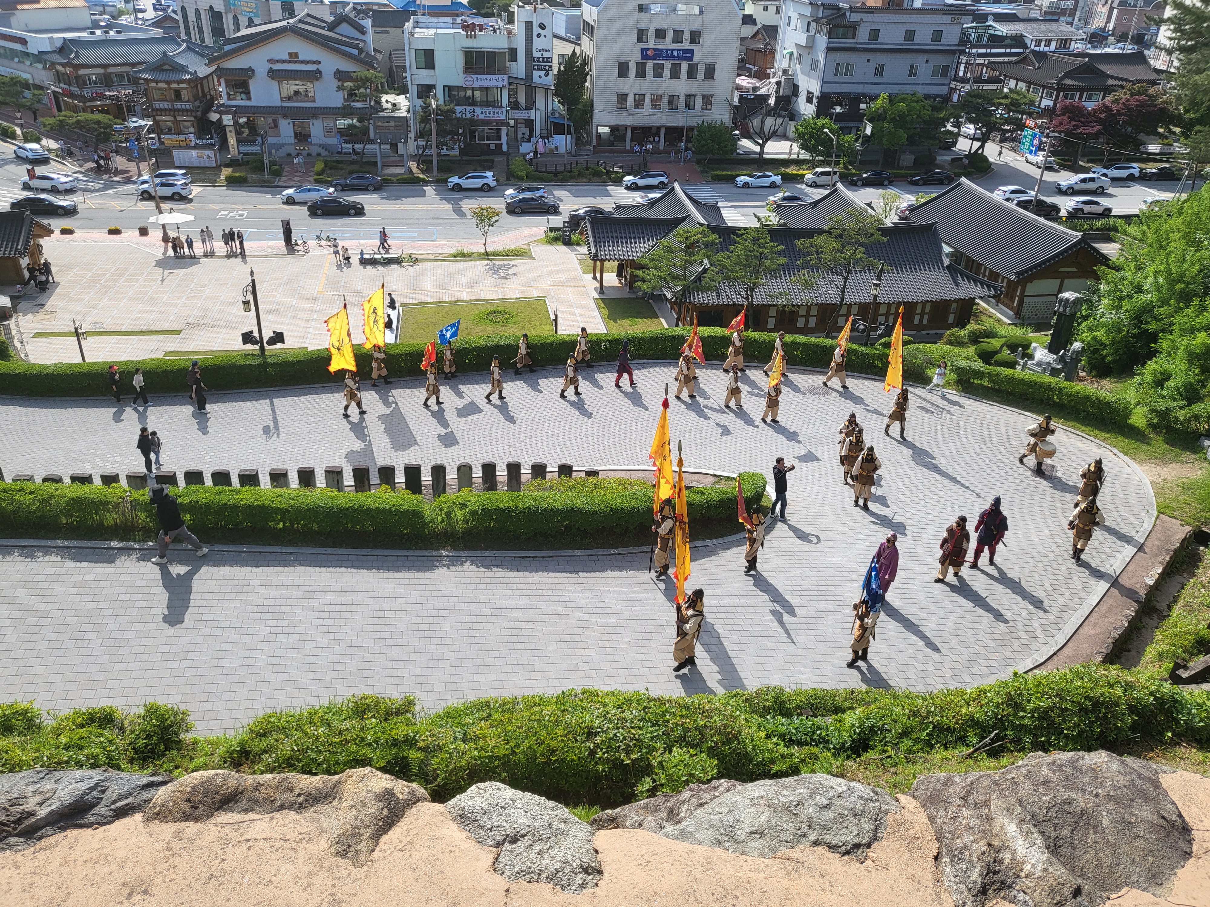 공산성에서는 하루에 몇차례 갑옷을 입고 행진하는 옛날사람(?)들을 볼 수 있는데요 바로 '공산성 수문장 교대식' 입니다. 수문장 교대식은 수문장청 소속 무관의 당직을 순번에 따라 교대하는걸 재현한 행사입니다.