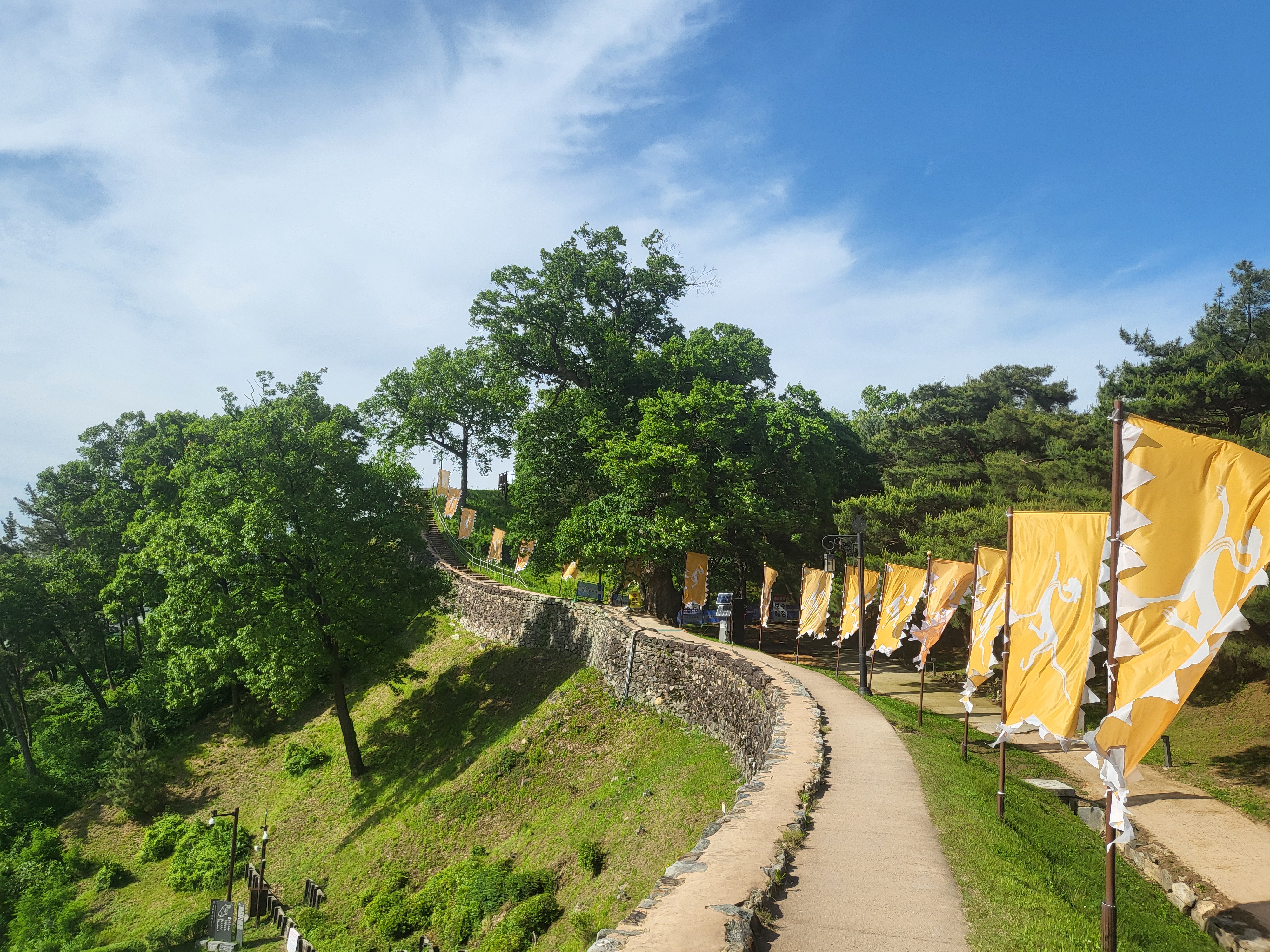 생각보다 공산성이 넓어서 모두 둘러보진 못했습니다. 금서루와 공북루 말고도 진남루와 영동루도 있는데요 다음 일정이 있기에 아쉽지만 다시 금서루 쪽으로 가서 성곽길을 타고 더 올라가 보았습니다. 울창한 숲과 옛 건물의 조화가 잘 어우러져 걷는 내내 마음이 편안했어요