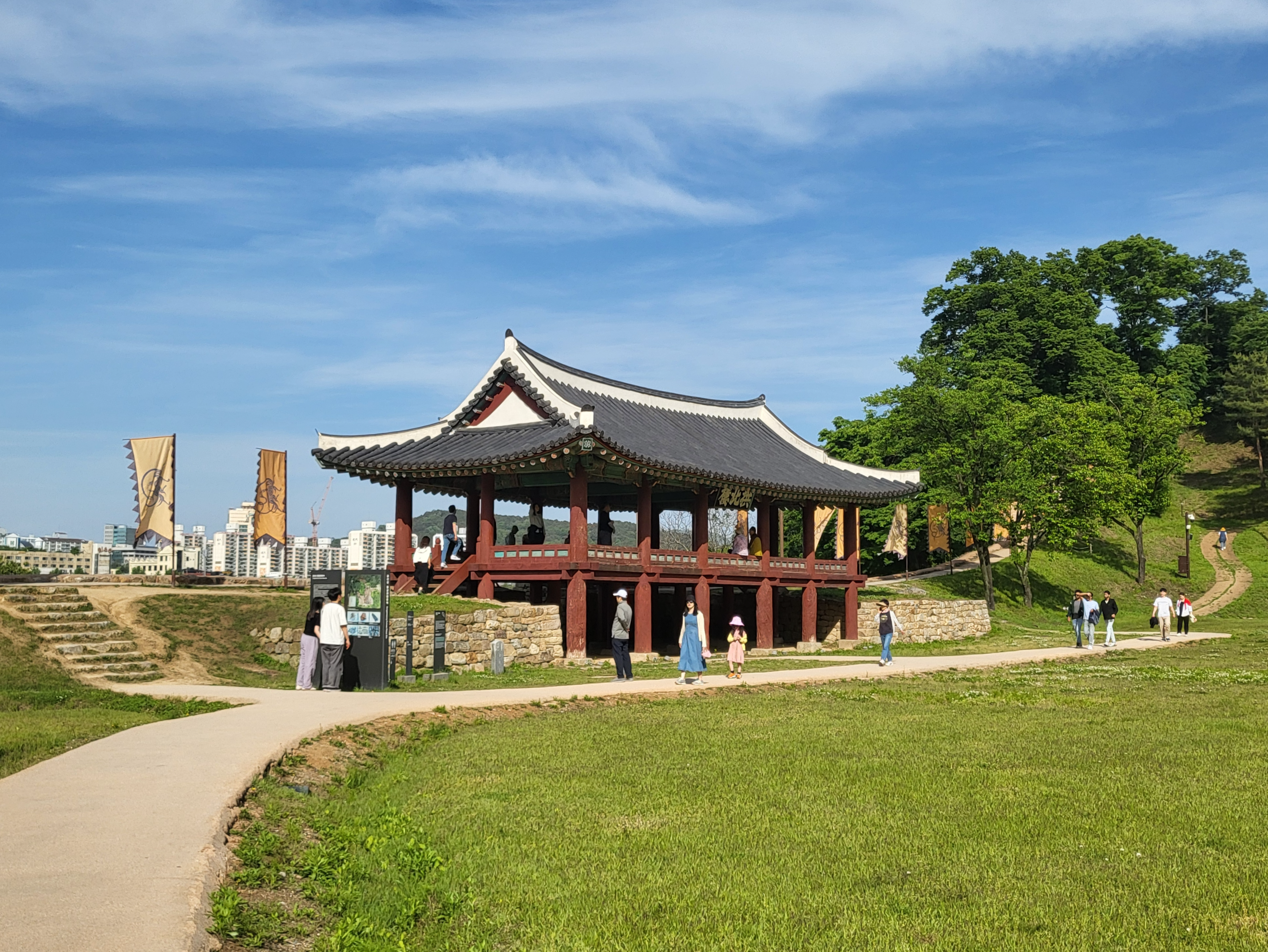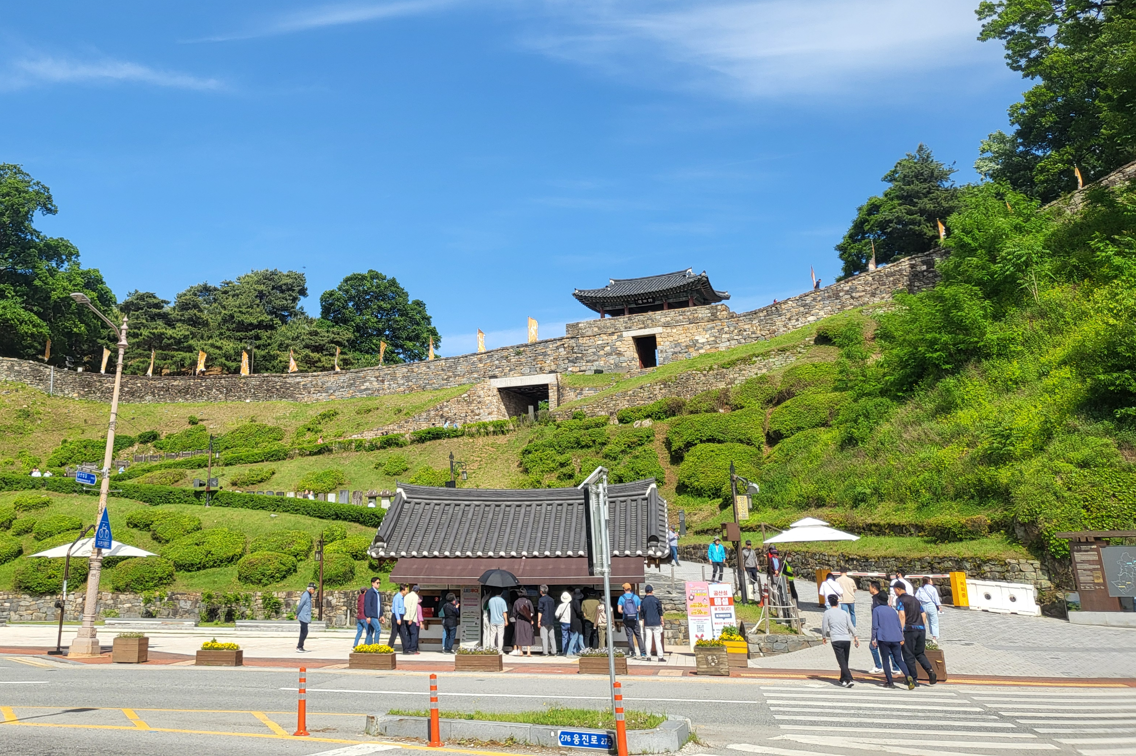 조금만 걸어가면 왼쪽에 바로 공북루가 보이는데요 '공북루'는 공산성의 북쪽 문루로 금강의 남쪽과 북쪽을 오가는 남북 통로의 주 출입문입니다. 문루는 문 위에 세운 높은 건물을 뜻하는데요 이런 옛날 기와 건물을 볼때면 마음이 참 차분해집니다.
