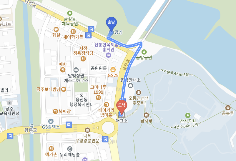 공영주차장에서 공산성까지의 거리는 약 300m정도 되고 걸어서 5분 입니다. 주말에 갔을땐 대로변에 차들이 줄지어 주차되어 있었는데요 제가 대보니 단속카메라에 걸리진 않았습니다. 그래도 안전하게 공영 주차장을 이용하시면 좋겠죠?