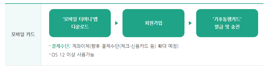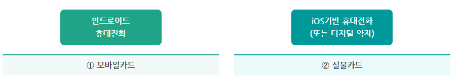 • 카드 종류 : 모바일카드 (안드로이드 휴대전화, OS 12 이상), 실물카드 (iOS 기반 휴대전화, 디지털 약자)