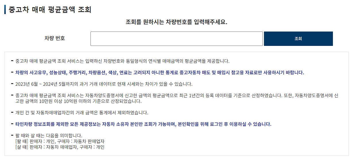 차량 번호를 입력하면 평균 매매금액 정보를 쉽게 확인할 수 있습니다. 이 정보는 동일 형식의 평균 금액을 기준으로 제공되므로, 참고용으로 유용하게 활용하실 수 있습니다.