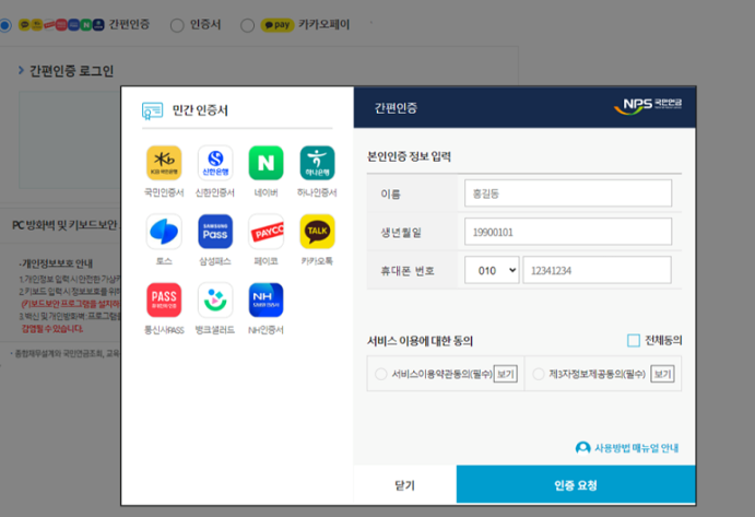 ④ 내 연금 알아보기 긴편인증 하기 (인증방법 선택 가능합니다)