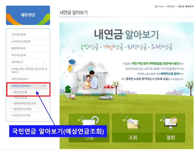 ② 재무진단 → 내 연금 알아보기 로 들어갑니다