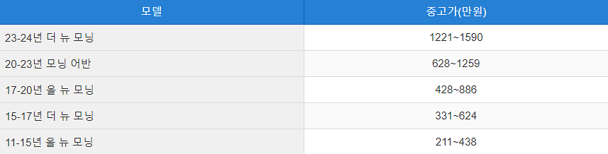 모닝 중고차 시세표