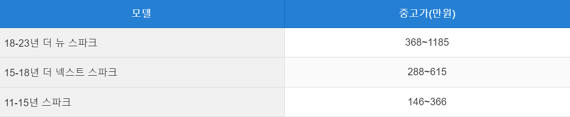 18-23년식 더 뉴 스파크 중고차 시세