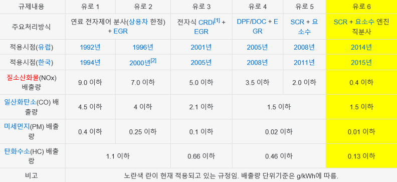 표가 어려워 보이지만 유로5, 유로6은 환경부담금을 내지 않아도 된다는 말입니다.