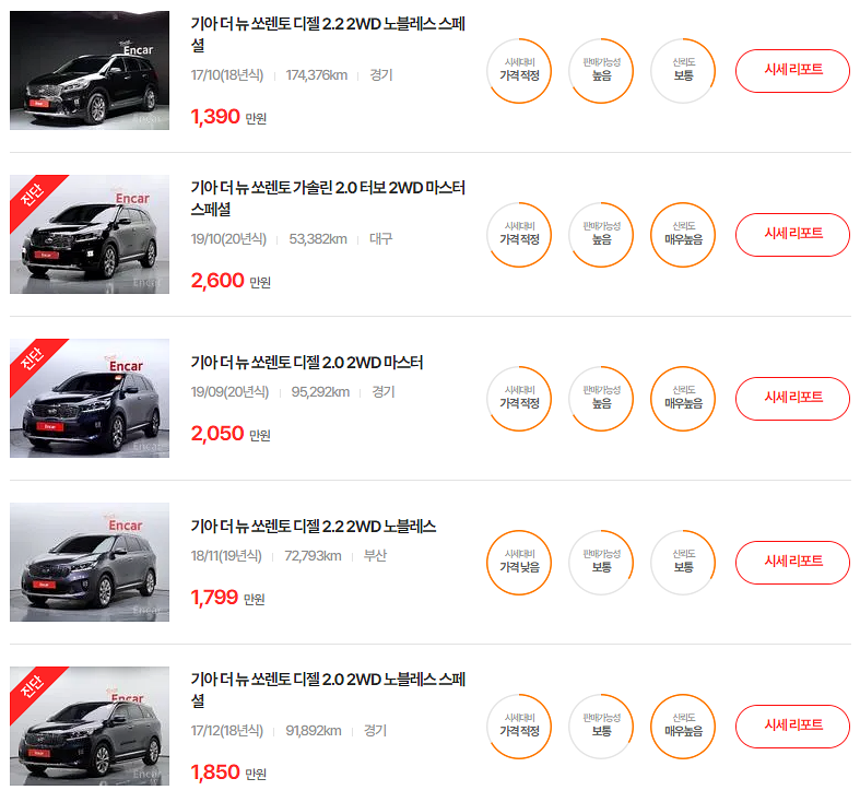 17-20년식 더 뉴 쏘렌토 중고차 시세