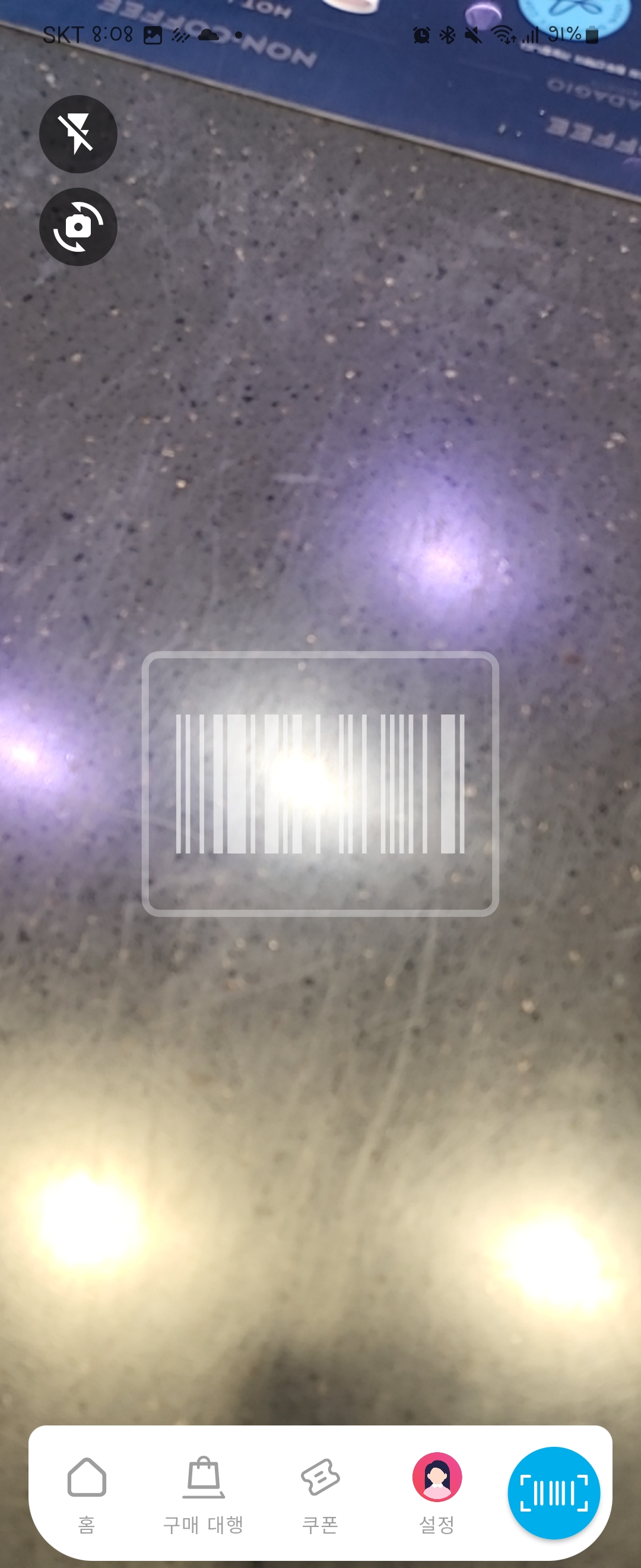바코드를 카메라 화면에 갖다 대주면 됩니다