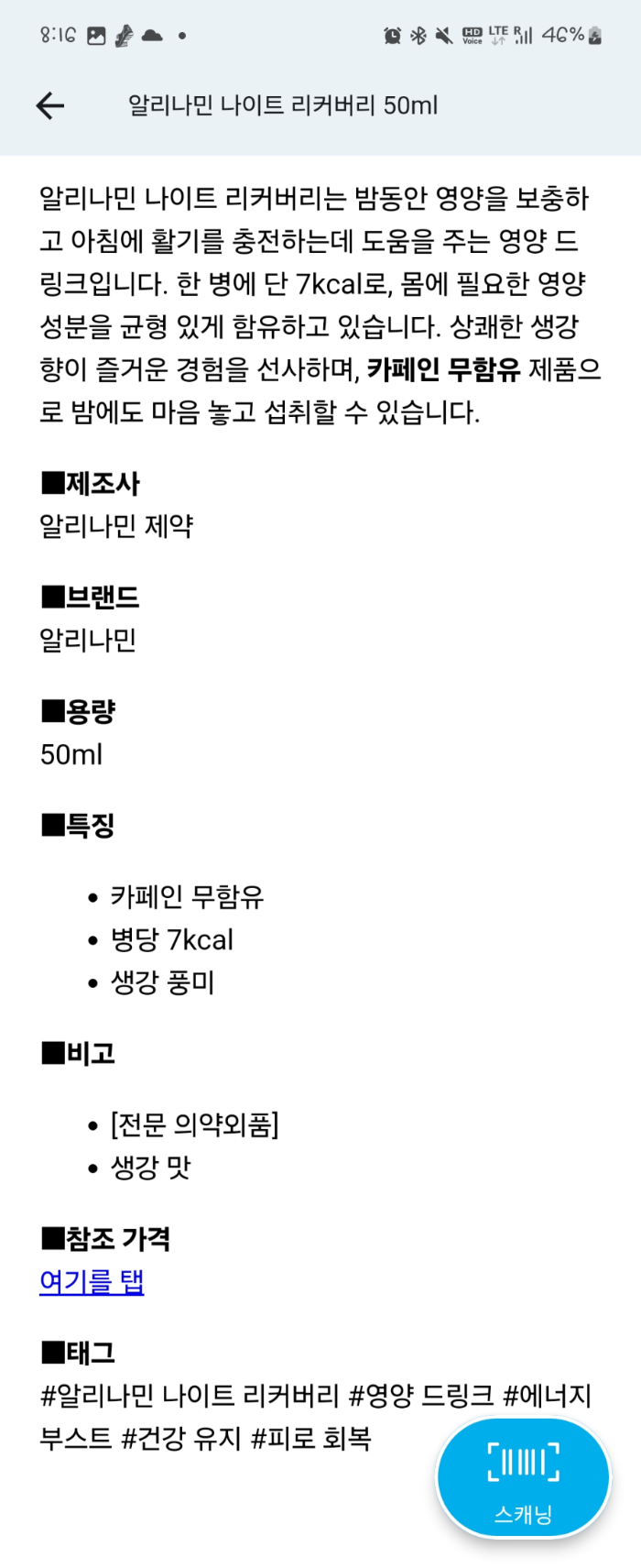 상품의 정보가 자세하게 나옵니다