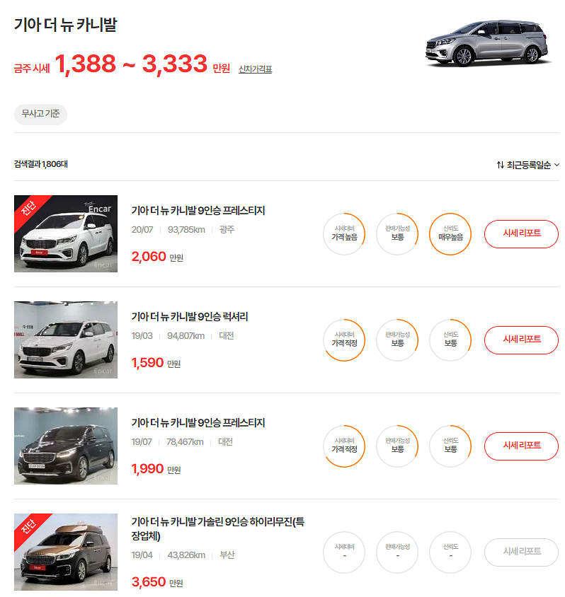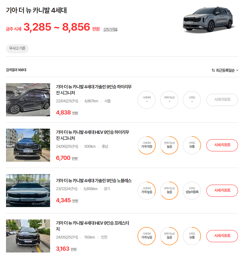 따라서, 아직까지 매물이 적은 연식의 카니발을 찾는 데는 다소 어려움이 있을 수 있습니다.