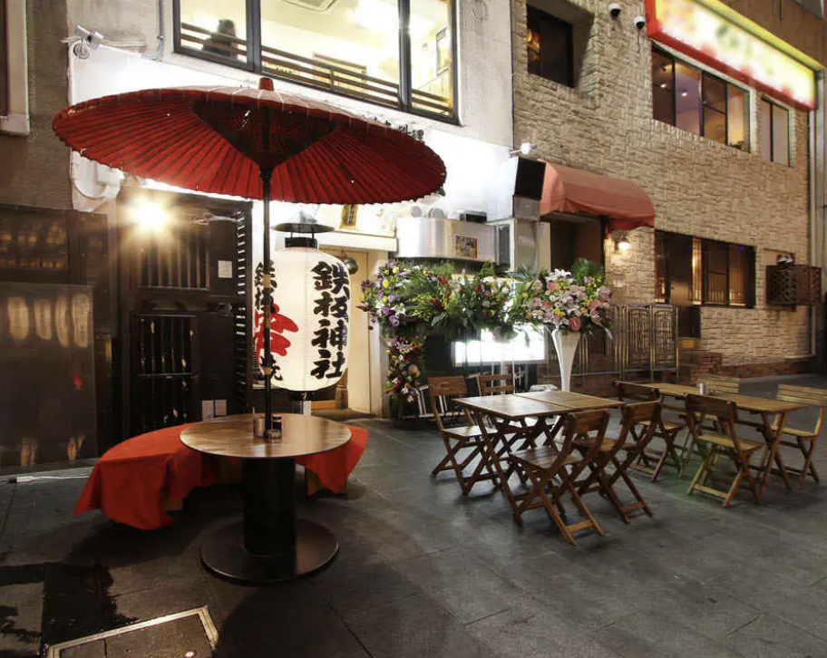 테판진자는 도톤보리 중심부에 위치하고 있는데요 날이 좋을땐 밖에서 강을 바라보며 꼬치를 즐길 수 있습니다. 강 바로 옆에 있어서 구글맵을 검색하고 가시면 바로 찾을실 수 있어요