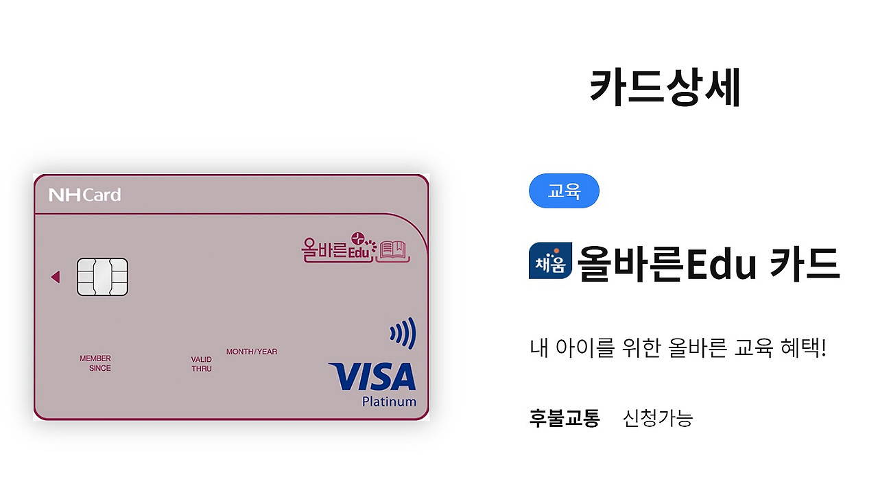 농협카드 중에서는 올바른 Edu카드가 학원비 할인 혜택을 제공합니다.