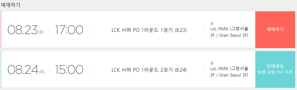 ▪️ 플레이오프 일정: 8월 23일 ~ 31일 (롤파크 LCK 아레나)