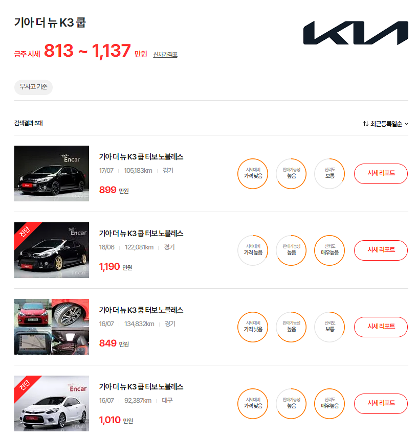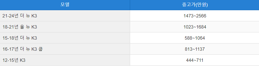 16-17년식 더 뉴 K3 쿱 중고차 시세